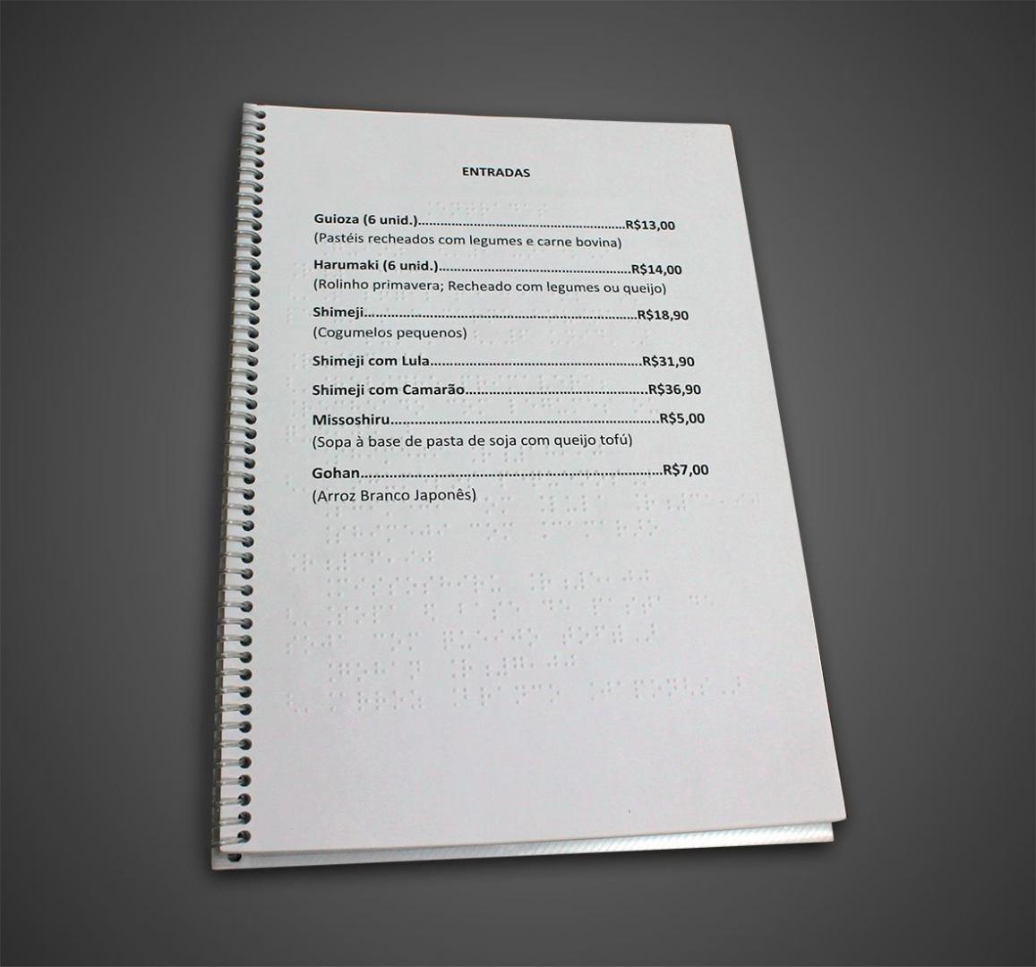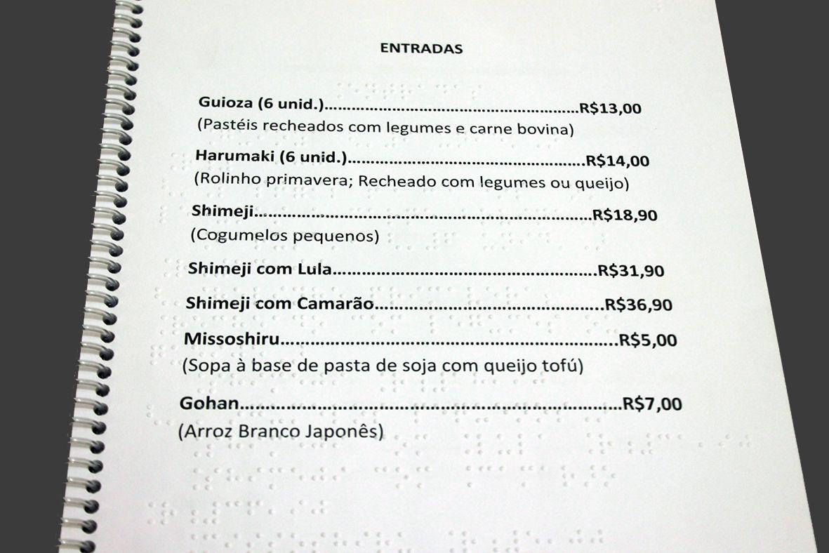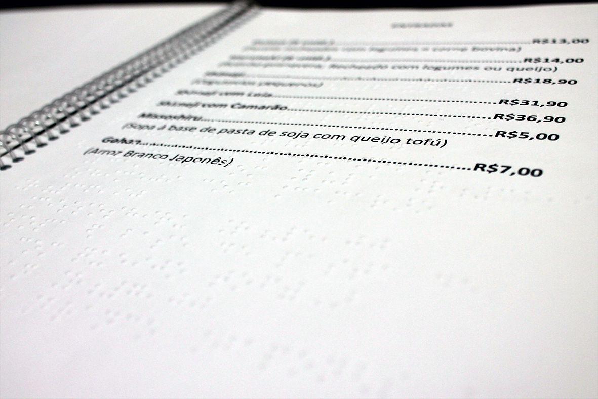 Cardápios em Braille